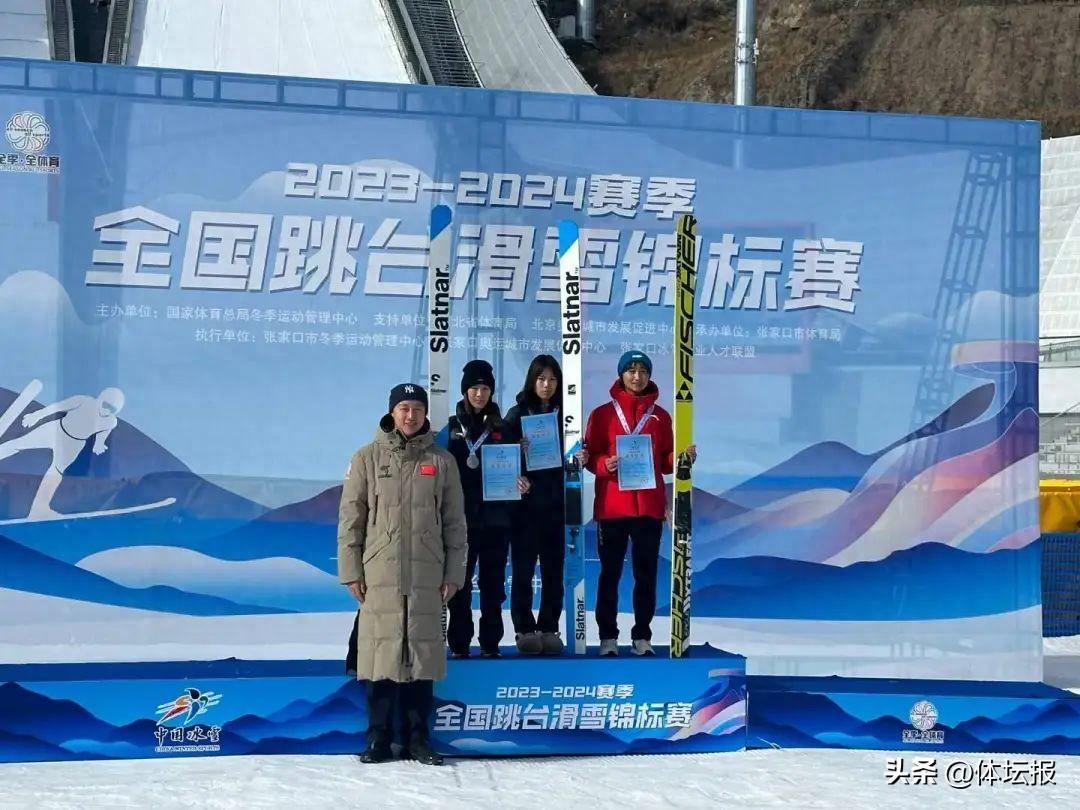 翁楊寧(右二)在全國跳臺滑雪錦標賽中獲得女子標準臺冠軍(圖源:蕭山區少體校)