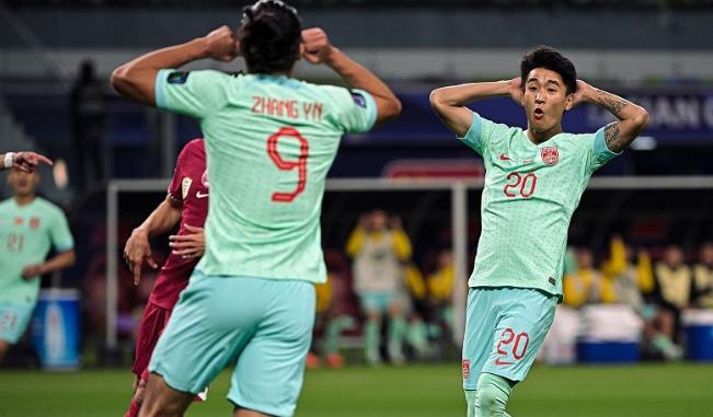 比賽開始之後,中國隊創造了多次機會,張玉寧傳球,韋世豪推射,力道十足,可惜角度偏了一點。第35分鐘,韋世豪又有一次機敏前插,可惜近在咫尺的射門被卡塔爾門將神勇擋出,之後張玉寧也在門前躍起頭球,險些打破僵局。而卡塔爾也有多次頗具威脅的機會,多虧蔣光太的穩健防守,多次化解險情。