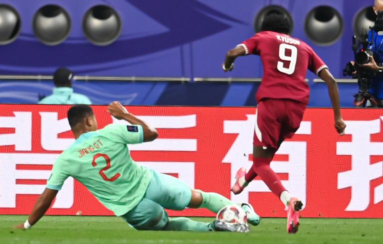 易邊再戰場上出現意外,卡塔爾替補門將眼睛被撞腫,再次換下,東道主不得不換上了第三位門將,與此同時,不少卡塔爾主力也登場了,結果在一次角球配合中,海多斯禁區弧頂一腳爆射入網,顏駿凌毫無辦法,中國隊0比1落後了。