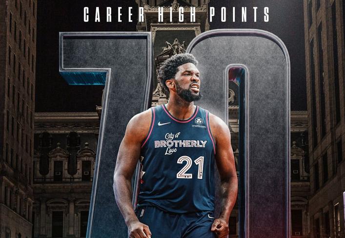 就在今天,聯盟又有兩位超級內線先後砍下60+。第一位是76人隊的大帝,貴爲兩屆得分王和上賽季常規賽MVP,大帝親征挑戰文班亞馬領軍的馬刺,僅出戰36分鐘,41投24中(三分球2中1),罰球23中21,爆砍70分+18籃板+5助攻的豪華數據。據統計,70分刷新了大帝生涯單場得分新高和76人隊史球員單場得分新高,大帝成爲NBA歷史上第9位砍下70+的球員,也是砍下70+用時最短的球員。大帝得分如同砍瓜切菜,靠的不僅僅是禁區的殺傷力和碰瓷能力,更多靠的是花樣繁多的進攻手段,既能在低位完成背身單打,又能在中遠距離完成投射,突出一個無解。
