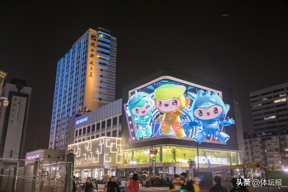 杭州亞運吉祥物裸眼3D宣傳片在街頭播放(圖自浙江宣傳)
