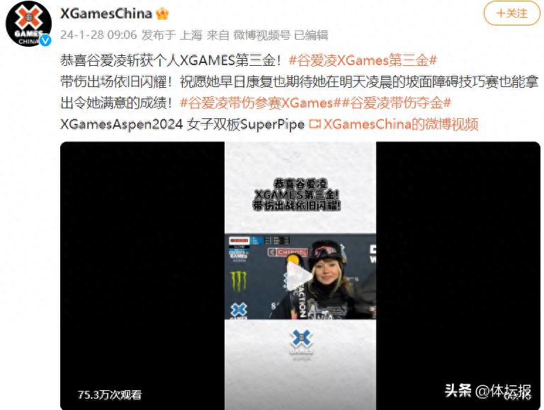2021年,谷愛凌首次參加X Games比賽,拿到了2金1銅。去年,谷愛凌也曾受邀參加X Games,但賽前訓練時膝蓋韌帶受傷最終退賽。本賽季,她遭遇傷病侵襲,此前的世界盃賽事也是帶傷出戰。