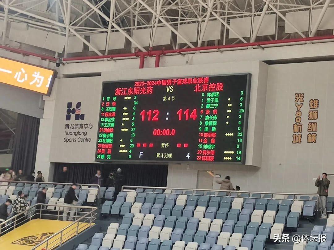 1月28日,浙江東陽光藥在主場第三次對壘北京控股。最終,東陽光藥在一度領先近二十分的情況下遭到對手逆轉,以112:114不敵對手,無緣六連勝。