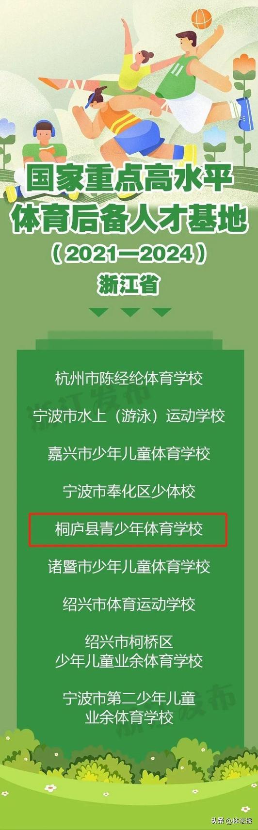 桐廬的各中小學校、俱樂部則爲分陣地,整合資源打造“縣隊聯辦”體育後備人才基地。目前,“縣隊聯辦”體育後備人才基地單位(學校與俱樂部)有26家,涉及體育項目22個。與此同時,桐廬還打造“市隊聯辦”項目基地,例如舊縣中心學校的射擊射箭項目、窄溪小學的自行車項目,還有方埠小學的攀巖項目等,旨爲進一步強化體育後備人才的管理及培育。