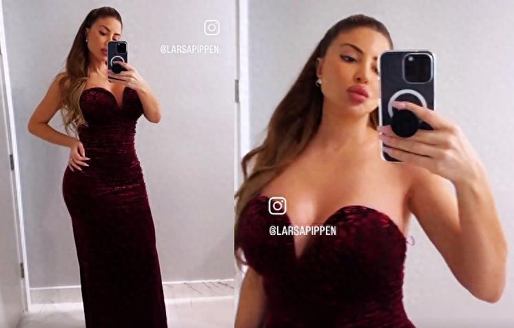 50歲拉爾薩曬自拍,穿抹胸紅裙秀身材!婀娜曲線,不輸金卡戴珊