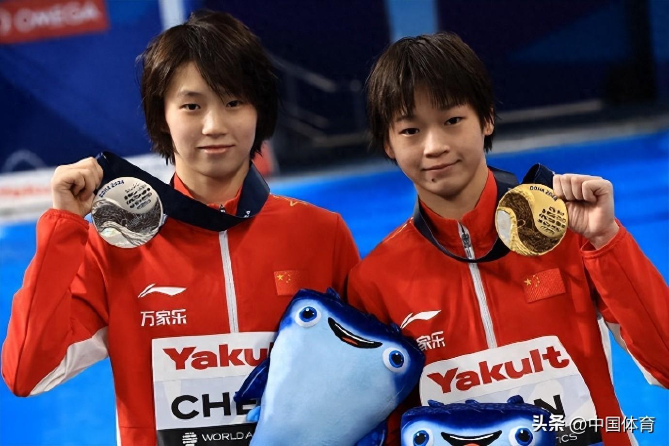 全紅嬋(右)、陳芋汐展示獎牌(圖片來源:世界泳聯官網)