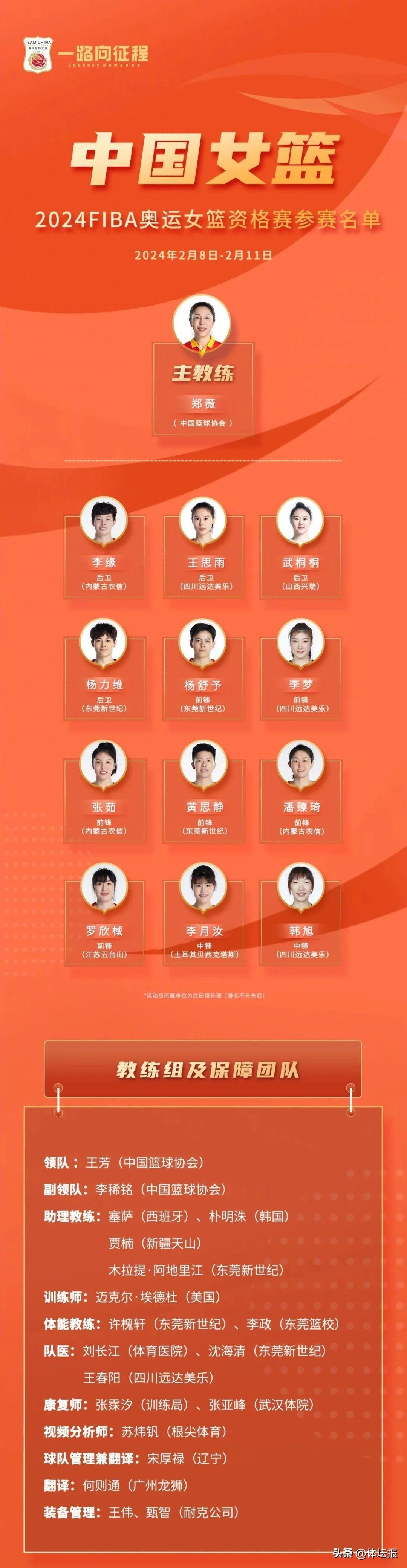 2月7日,中國籃球之隊官方發佈了中國女籃奧運資格賽12人蔘賽名單,包括李月汝、黃思靜、武桐桐等人悉數迴歸,爲奧運會資格賽做準備。