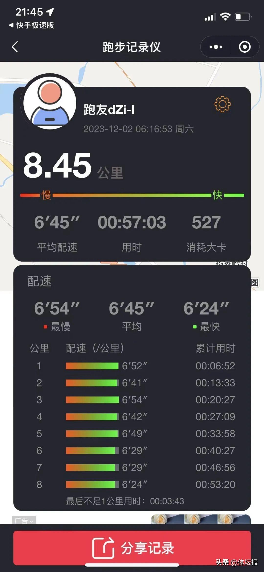 於是,潘冉從去年4月開始跑步。起初只能跑3公里,後來最多一次跑了8.45公里,現在維持在每次5-6公里。這個距離並不長,每次還要耗時40分鐘以上,可貴的是她堅持了下來,而不是一時興起,“目前我是平均跑5休1,大多是在破曉時分跑步。跑完送孩子上學,去上班。”潘冉表示,剛開始跑的時候自己還挺害怕的,後來時間久了,膽子也大了起來,再加上有來往上班的人,現在也不再畏懼。