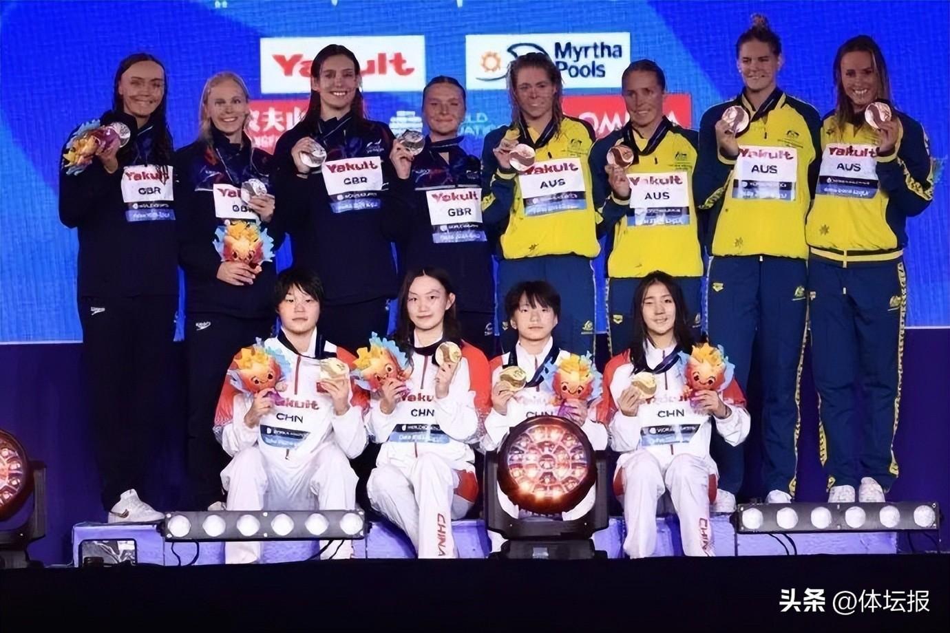 女子4×200米自由泳接力決賽,中國隊艾衍含/龔真琦/李冰潔/楊佩琪以7分47秒26奪得該項目冠軍,這也是中國隊歷史上第三次拿到該項目金牌。英國隊、澳大利亞隊分別摘得銀牌和銅牌。