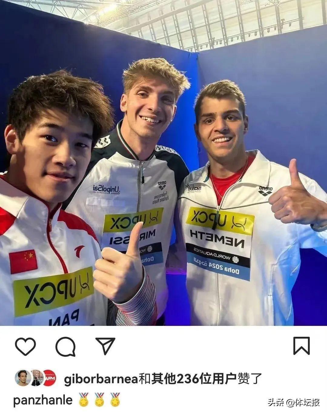 游泳世錦賽 | 男子100米自由泳潘展樂奪金,“我們巴黎奧運會見”