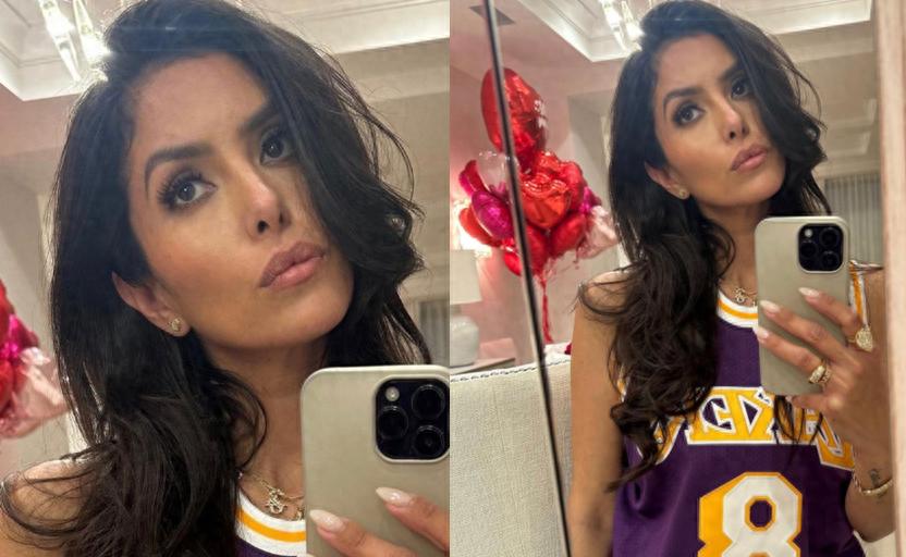 43歲瓦妮莎穿科比球衣自拍,肩膀明顯變窄!五官精緻,有少女感