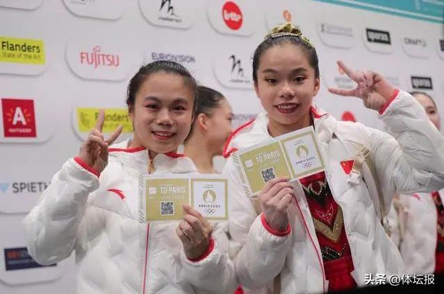 中國選手張清穎(左)、黃卓凡在女子資格賽後展示2024年巴黎奧運會的“入場券”。(資料圖)