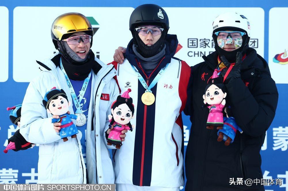 中國體育訊 2月21日,第十四屆全國冬季運動會自由式滑雪空中技巧公開組男子個人決賽在內蒙古呼倫貝爾市扎蘭屯金龍山滑雪場舉行。河南隊陳碩奪得金牌,吉林隊李天馬和黑龍江隊方坤分獲銀牌和銅牌。遼寧隊名將賈宗洋失誤排名第五位。(中國體育圖片 安靈均 攝)