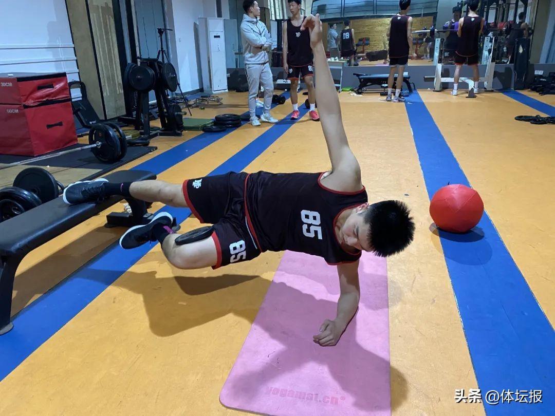對抗賽一結束,教練就集結全體球員用戰術板講解、佈置戰術,這幾秒也成了球員們寶貴的休息時間。“三十三秒,打三個來回,開始!”教練話音剛落,也意味着休息結束,緊鑼密鼓的技戰術演練隨即展開。正月裏,隊員們穿着短袖短褲,着裝的反差與訓練的熱情讓記者切實感受到了“熱辣滾燙”,而這堂訓練課的強度有多高,從他們溼透的衣襟和扶膝大口喘氣的動作中就能得到答案。