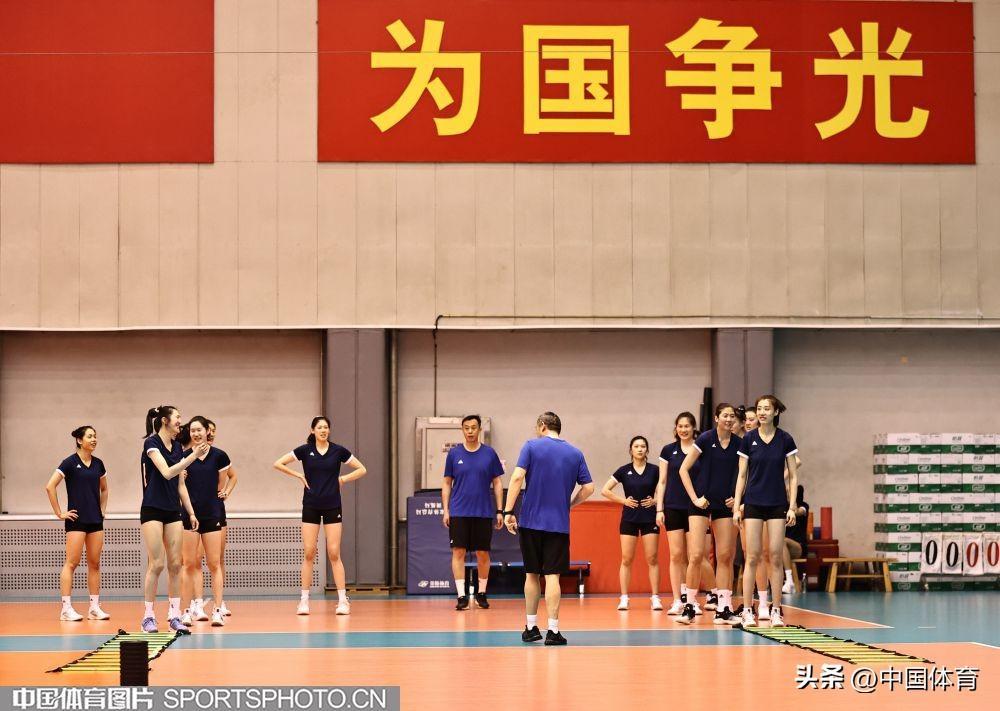中國女排主教練蔡斌爲隊員佈置訓練內容