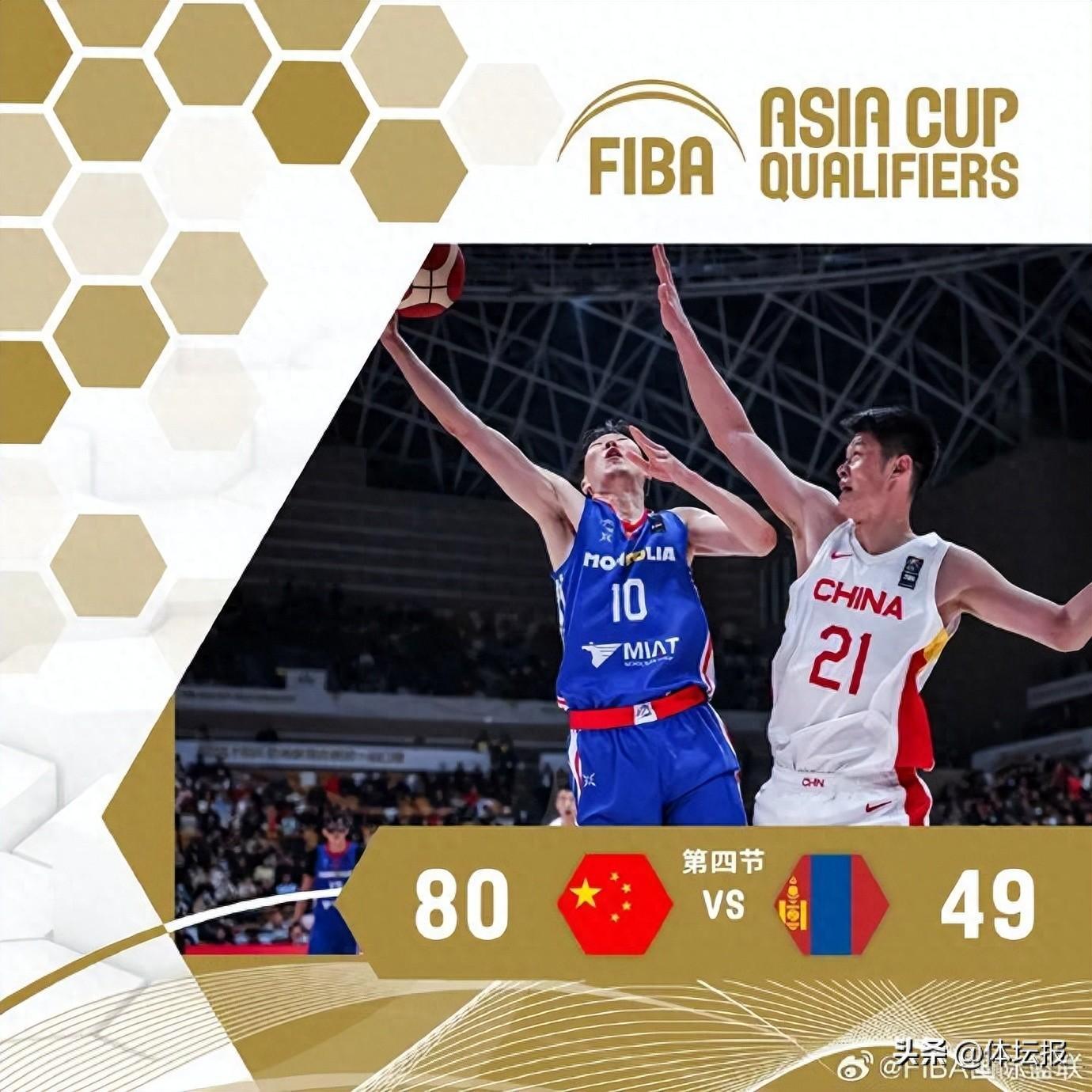 由於蒙古男籃上半場在防守端消耗了過多的體力,隨着比賽的深入,已經很難再跟上中國男籃的節奏。終場前3分鐘,中國男籃仍領先26分,比賽也失去了懸念。