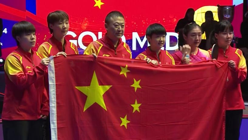3-2艱難奪冠!中國女乒擊敗日本,馬琳快哭了,5金花舉國旗慶祝