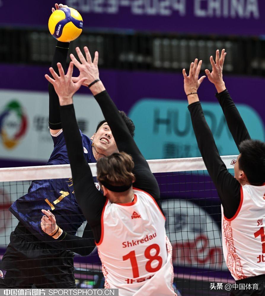 中國體育訊 2月25日,2023-2024賽季中國男子排球超級聯賽第二階段比賽繼續進行。北京北汽坐鎮主場3比1力克上海光明。(中國體育圖片 王憲民 攝)