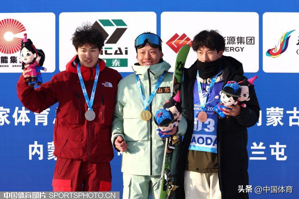 中國體育訊 2月26日,第十四屆全國冬季運動會自由式滑雪男子U型場地技巧公開組決賽,在內蒙古扎蘭屯金龍山滑雪場舉行。山東隊毛秉強以95.50分獲得金牌,河北隊盛海鵬和遼寧隊李松晟分獲銀牌和銅牌。(中國體育圖片 安靈均 攝)