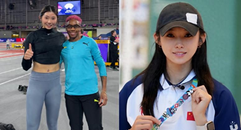 在賽前的場地踩點環節中,吳豔妮還是非常輕鬆的,並且與世界紀錄保持者巴哈馬名將查爾頓來了一張合影。