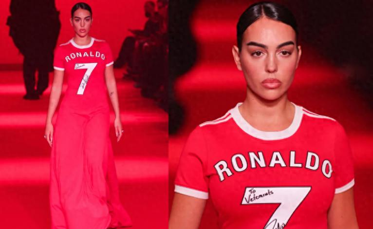雖然說,這套運動穿搭與秀場時尚畫風有點格格不入,但喬治娜還是憑藉自信的步伐,把自己的身材優勢完美展現了出來,同時讓球迷有一種夢迴C羅曼聯黃金時代的錯覺。