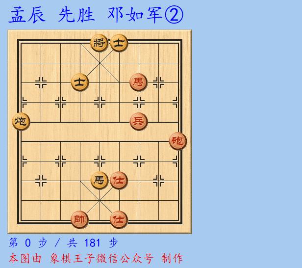 孟辰憑着殘棋的強大功力,再次形成馬炮兵雙仕對馬炮雙士的要勝之面。