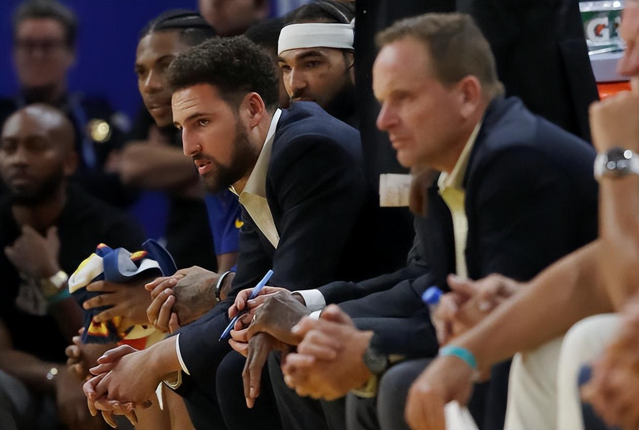 當勇士球員們在大通中心的主場更衣室裏瘋狂慶祝時,克萊頭上搭着一條毛巾,獨自坐在他的更衣櫃前,顯得格格不入。