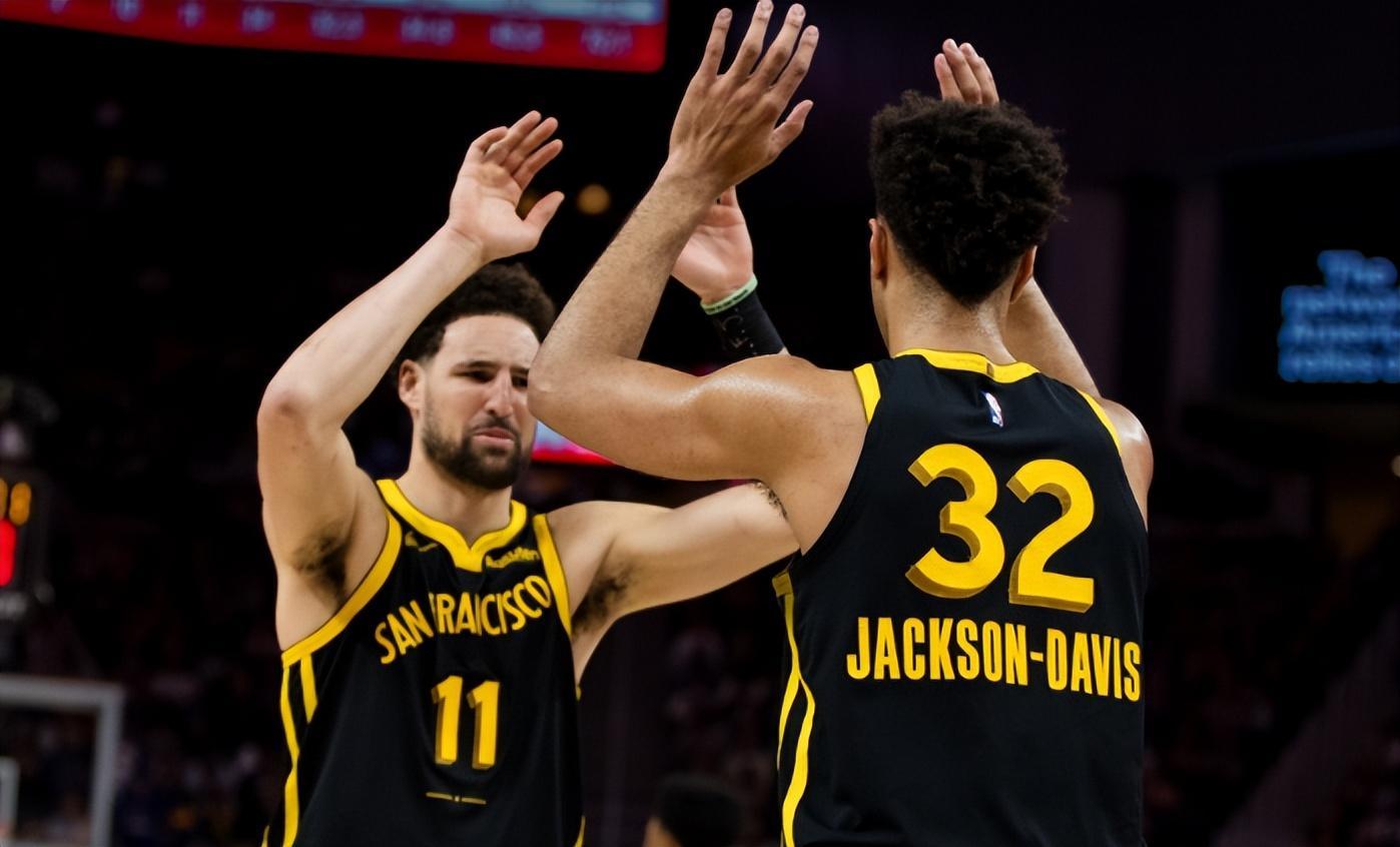 更喜人的是,在面對對方替補時,即便克萊手感不好,他也可以用其他方式來正面影響比賽。上週對湖人的比賽他全場9投僅1中,但他帶的替補陣容卻是贏分的。當對手的替補球員因爲克萊的投射威脅而對他多加戒備時,年輕的中鋒特雷·傑克遜-戴維斯就有了巨大的順下空間。那場比賽他在湖人內線翻江倒海,10投8中砍下了17分。