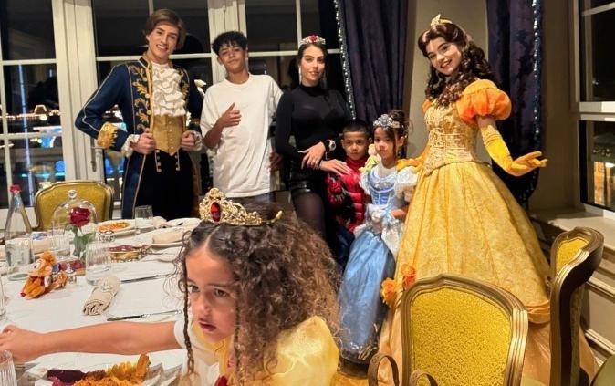 而龍鳳胎姐弟和四妹阿拉娜,則是穿着卡通造型服裝,玩得不亦樂乎,非常興奮。當然,已經邁過30歲門檻的喬治娜,來到迪士尼樂園後,也是瞬間回到小公主的狀態,帶着皇冠,笑容燦爛,沉浸在每一個園區的童趣氛圍中,從白天玩到傍晚,疲憊感全無。