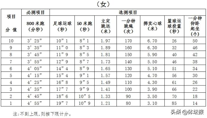 溫州市調整仰臥起坐項目評分標準
