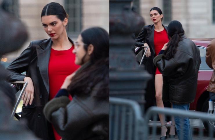 近日,許久沒有露面的超模肯達爾-詹娜現身法國巴黎,爲某化妝品牌拍攝最新廣告大片,只見,“肯豆”穿了一身紅色連體短裙,在人羣中遠遠就能看到她的身影,紅裙外又披了一件黑色風衣,又美又颯,氣質優雅。