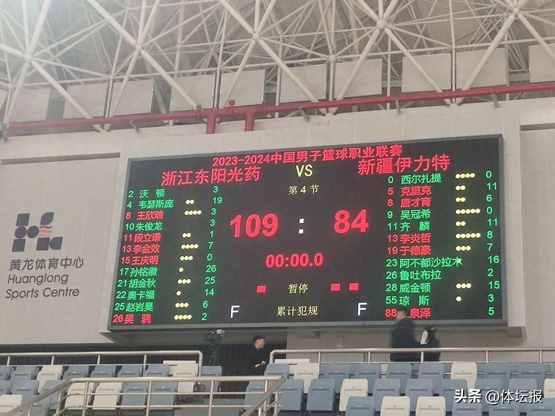 3月12日,浙江東陽光藥迎來連續第三個主場,本賽季第二次對陣新疆伊力特。最終,東陽光藥109:84大勝新疆,取得兩連勝。此役東陽光藥四人得分上雙,孫銘徽貢獻26分10助攻,胡金秋砍下25分;新疆同樣四人得分上雙,阿不都沙拉木得到全隊最高的16分。