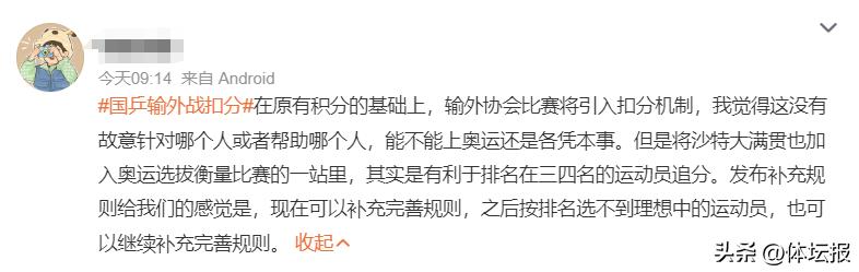 值得一提的是,《乒乓球項目2024巴黎奧運會參賽選拔辦法》對於奧運單打選拔積分體系的設計,只有加分項,並無扣分項——國乒隊員在有效期內的國際大賽的單打項目中獲得前三名成績的運動員均可獲相應獎勵積分;同時,在國際大賽團體項目淘汰賽階段,團體賽中每一場單打比賽的勝者均可獲相應獎勵積分。