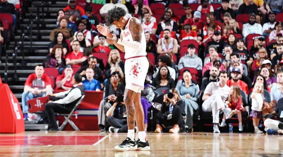 他能在揭幕戰打出10中2、4失誤的駭人表現,也能在兩天後交出20中10的優秀成績單;他有過13中1的壯舉,連休斯頓發射場都能聽到他的打鐵聲,也有過23投爆砍37分的偉業。讓球迷在“眼前一亮”和“眼前一黑”之間反覆切換,彷彿坐上了股市跳樓機,讓你永遠不知道這次重挫是不是技術性調整,下次回暖會不會又是追漲陷阱。