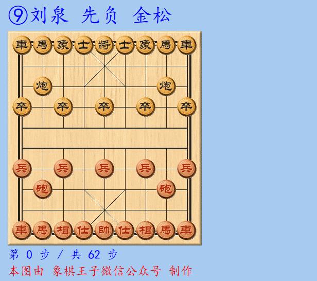 第七仗,再次面對劉泉的仕角炮,金松後手同樣應法中,改了一招,紅炮八進一成誤,黑布局反先間。