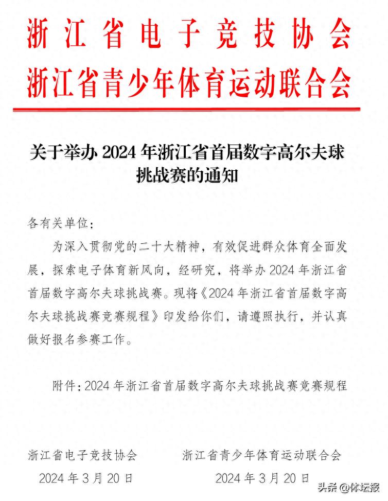 3月21日,記者從浙江省電子競技協會了解到,浙江省首屆數字高爾夫球挑戰賽將於5月打響。