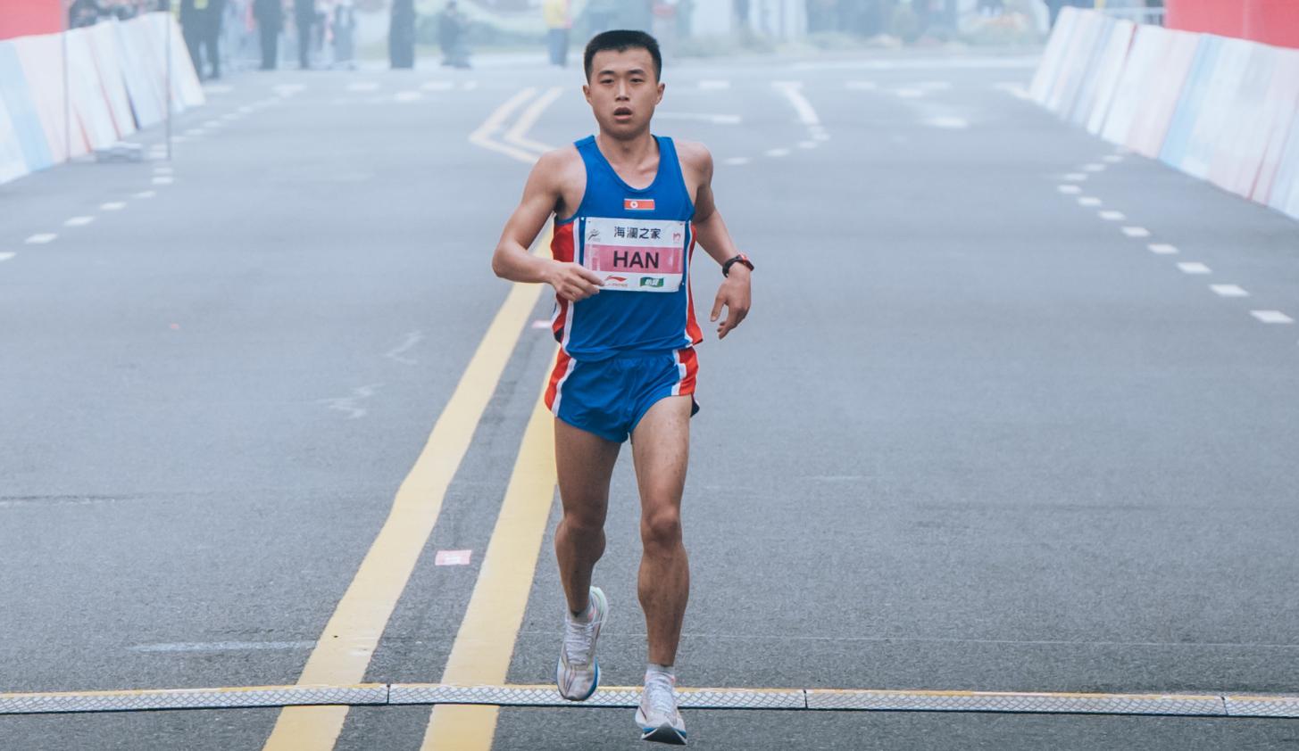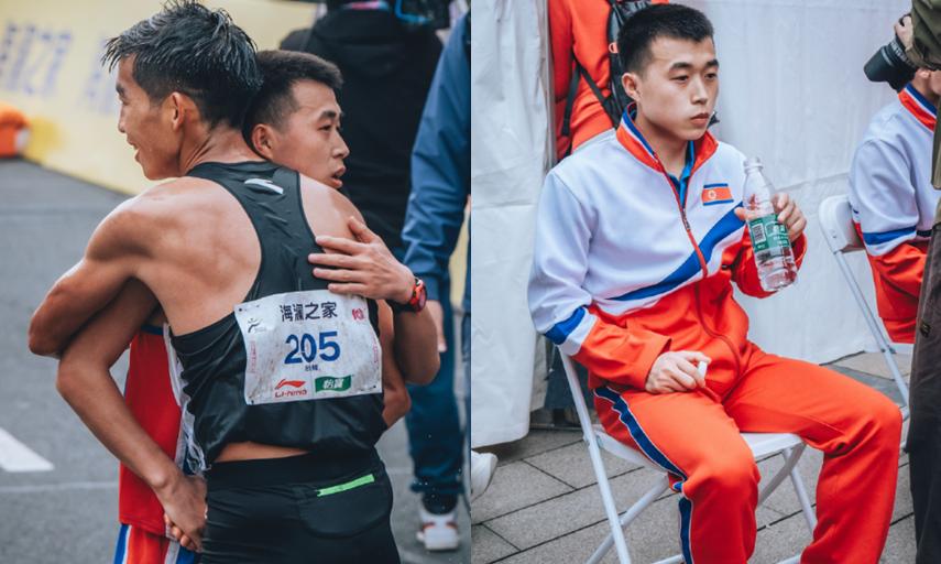 時隔大半年再見韓日龍,他的狀態一點沒變,還是那麼謙遜有禮,穿着朝鮮隊的比賽服,認真備戰這次賽事,相比起之前在杭州亞運會的生澀拘謹,再次來華的韓日龍明顯淡定從容了很多,在跑完全程之後,他還主動與中國運動員擁抱致意。