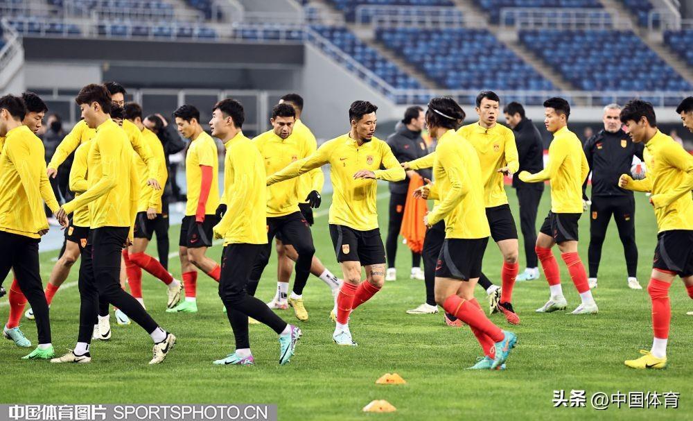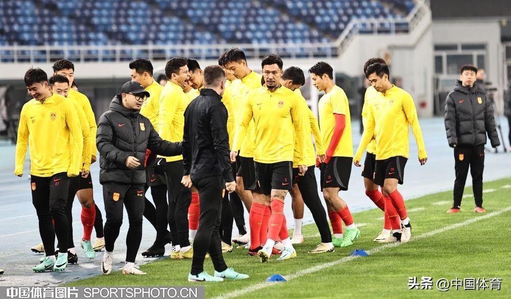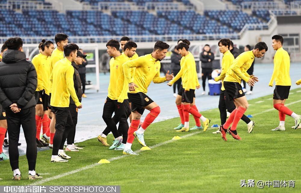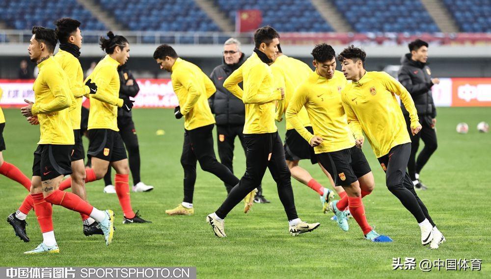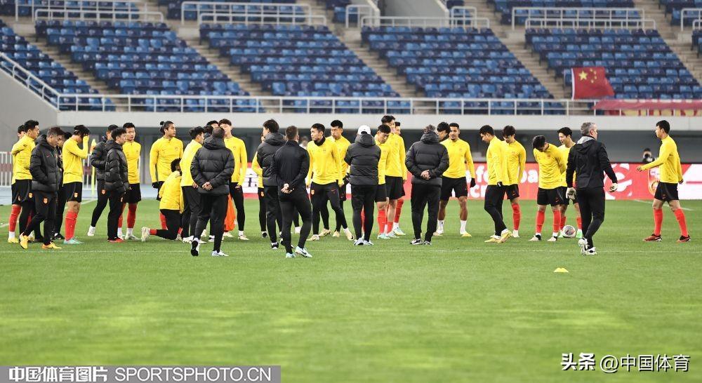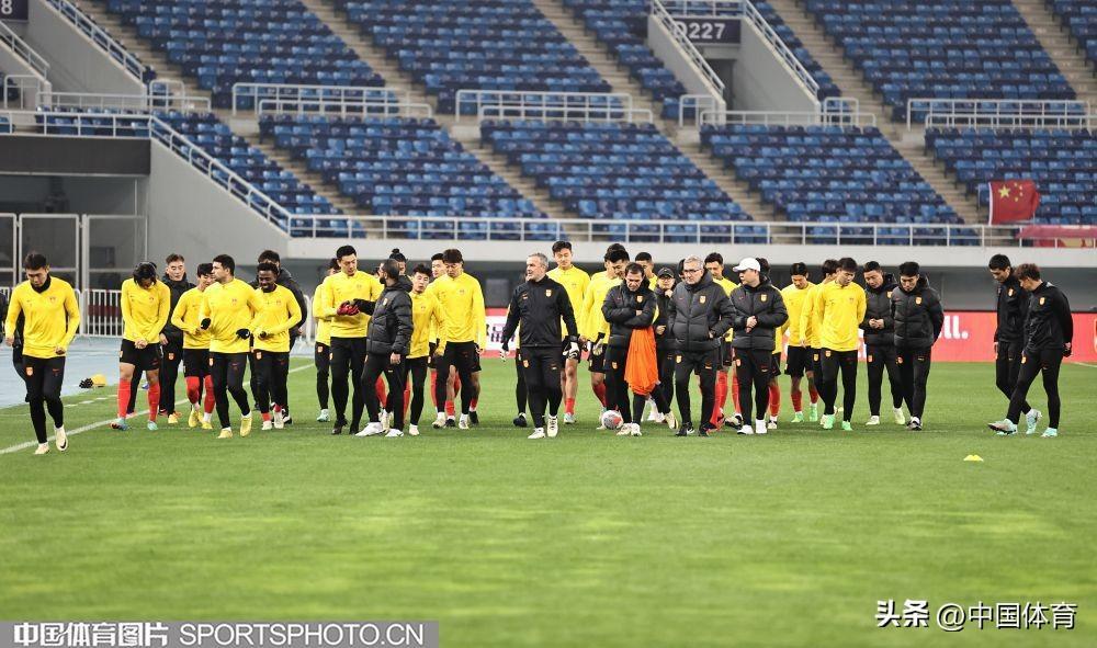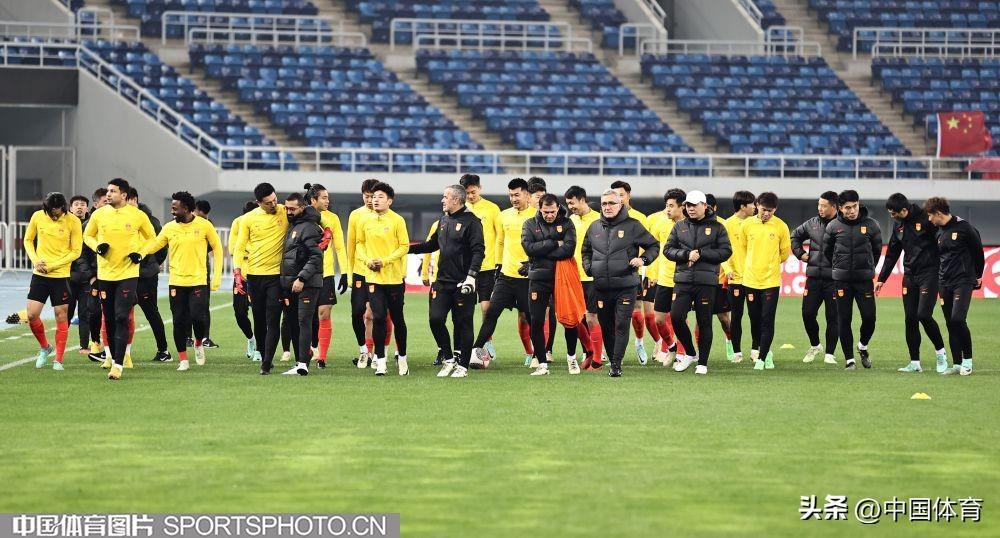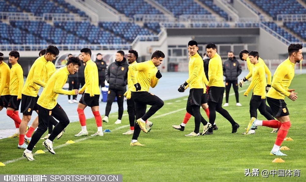 中國男足進行賽前訓練!足球世界盃預選賽26日在天津打響