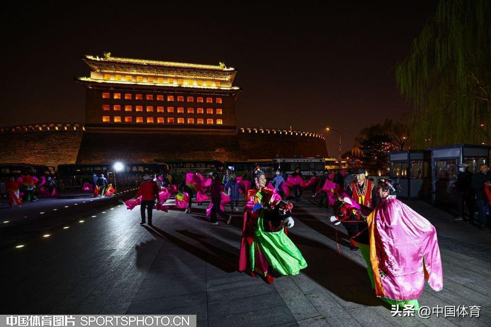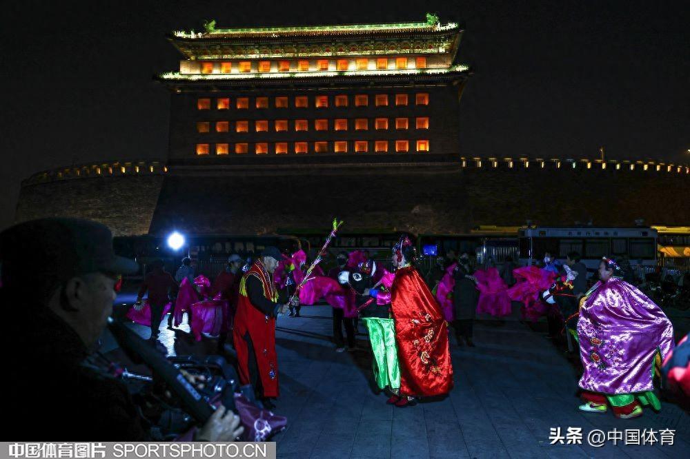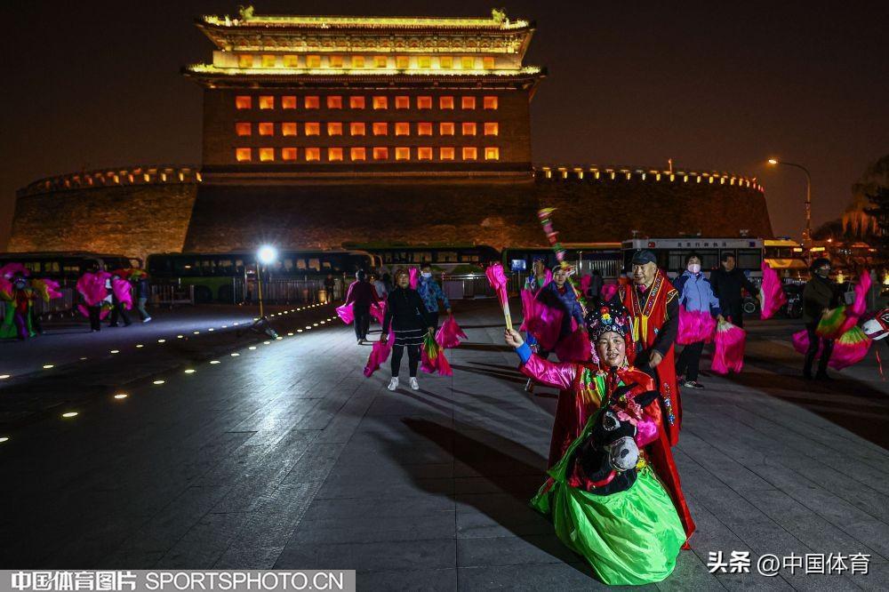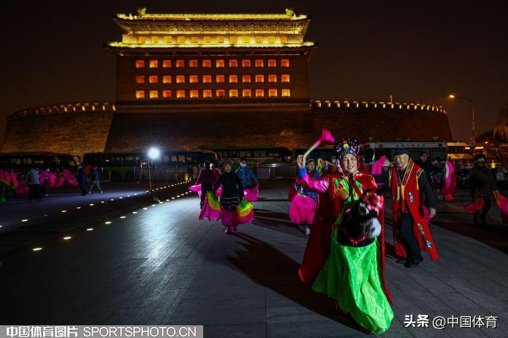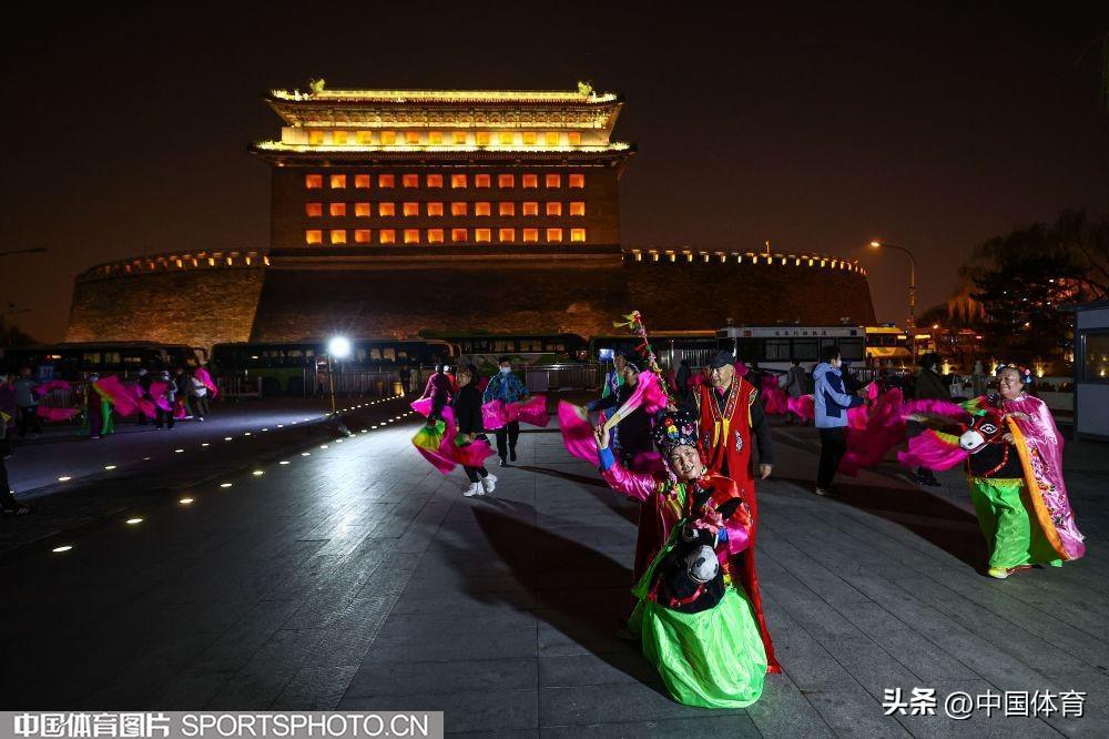 3月25日,熱愛秧歌的老年人在北京西城區德勝門城樓下跳秧歌,健身秧歌成爲老年人夜生活的一種快樂選擇。圖爲現場場景。(中國體育圖片 安靈均 攝)