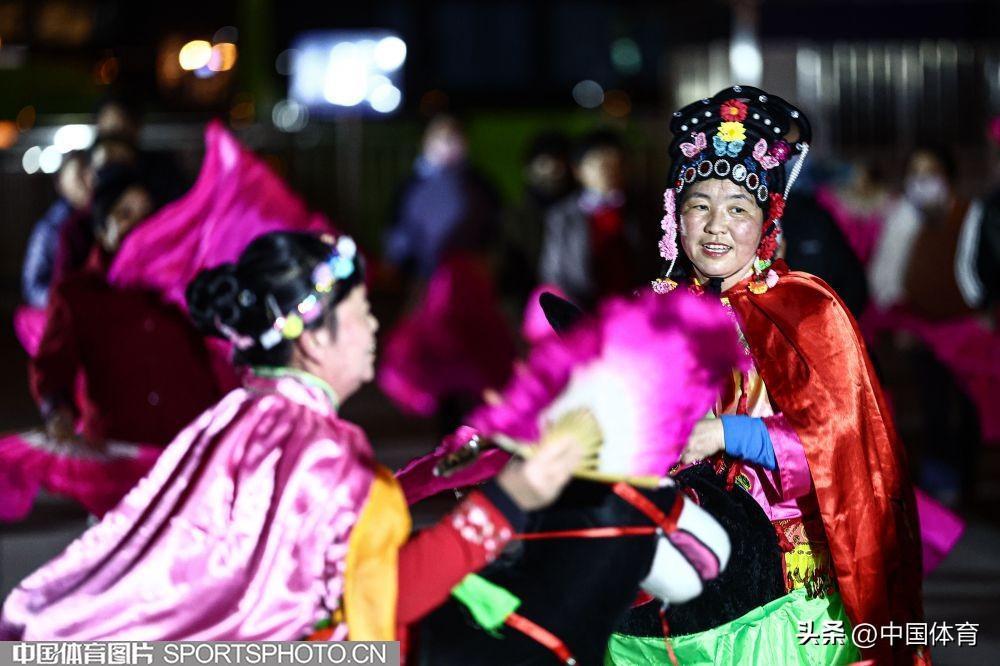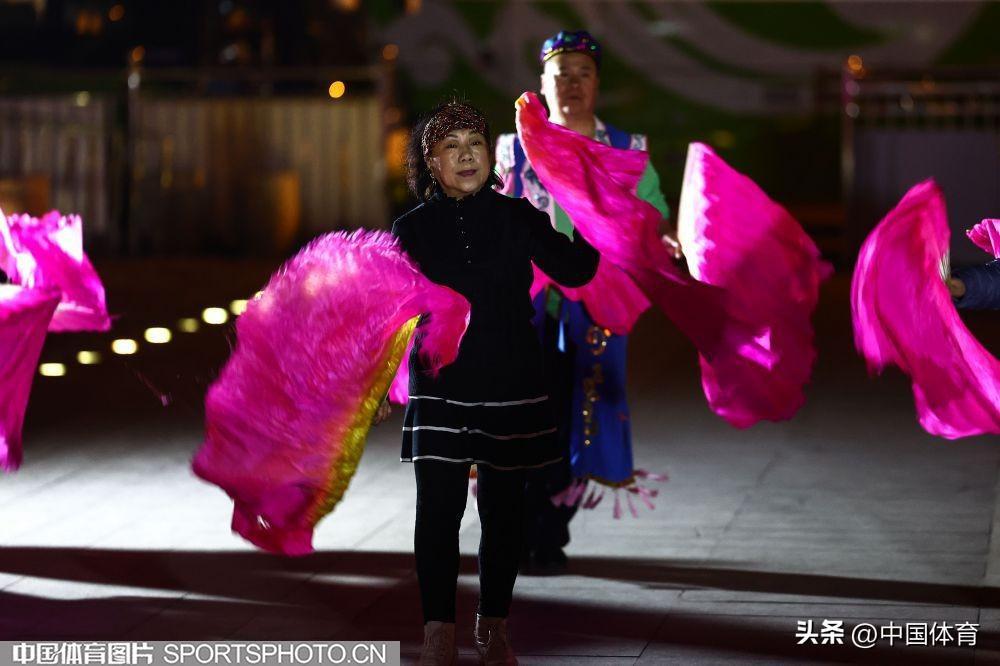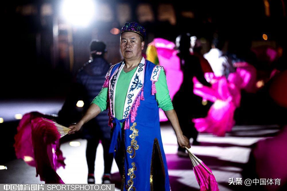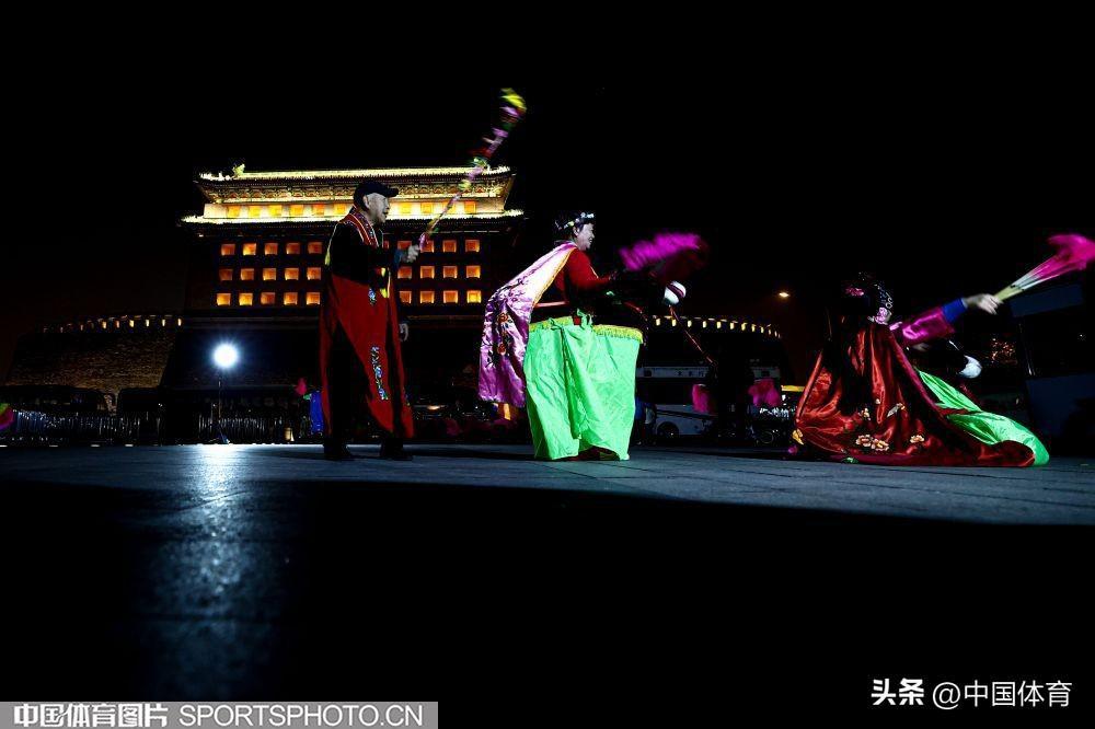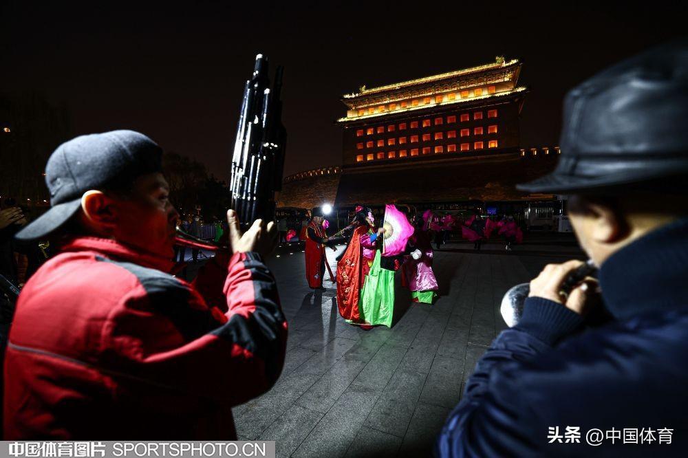 3月25日,熱愛秧歌的老年人在北京西城區德勝門城樓下跳秧歌,健身秧歌成爲老年人夜生活的一種快樂選擇。圖爲現場場景。(中國體育圖片 安靈均 攝)