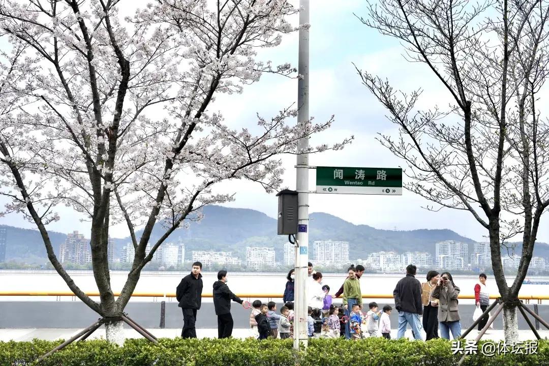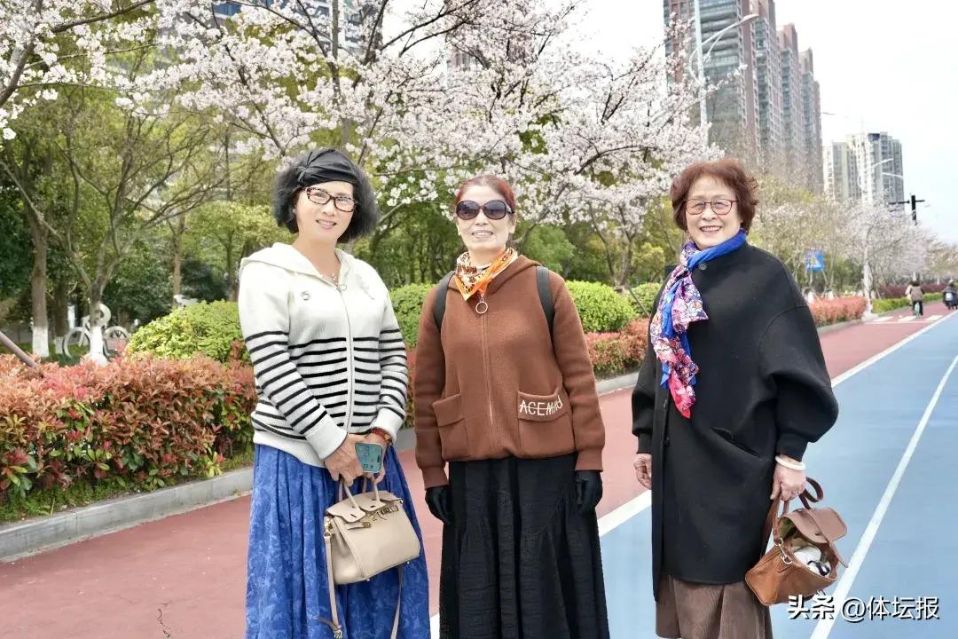市民徐女士正帶着小姐妹們在樹下襬pose。“這幾天是櫻花開得最盛的時候,我們是特地過來賞花拍照的。”徐女士笑着說,平時她們也會來這裏走走路,鍛鍊身體。
