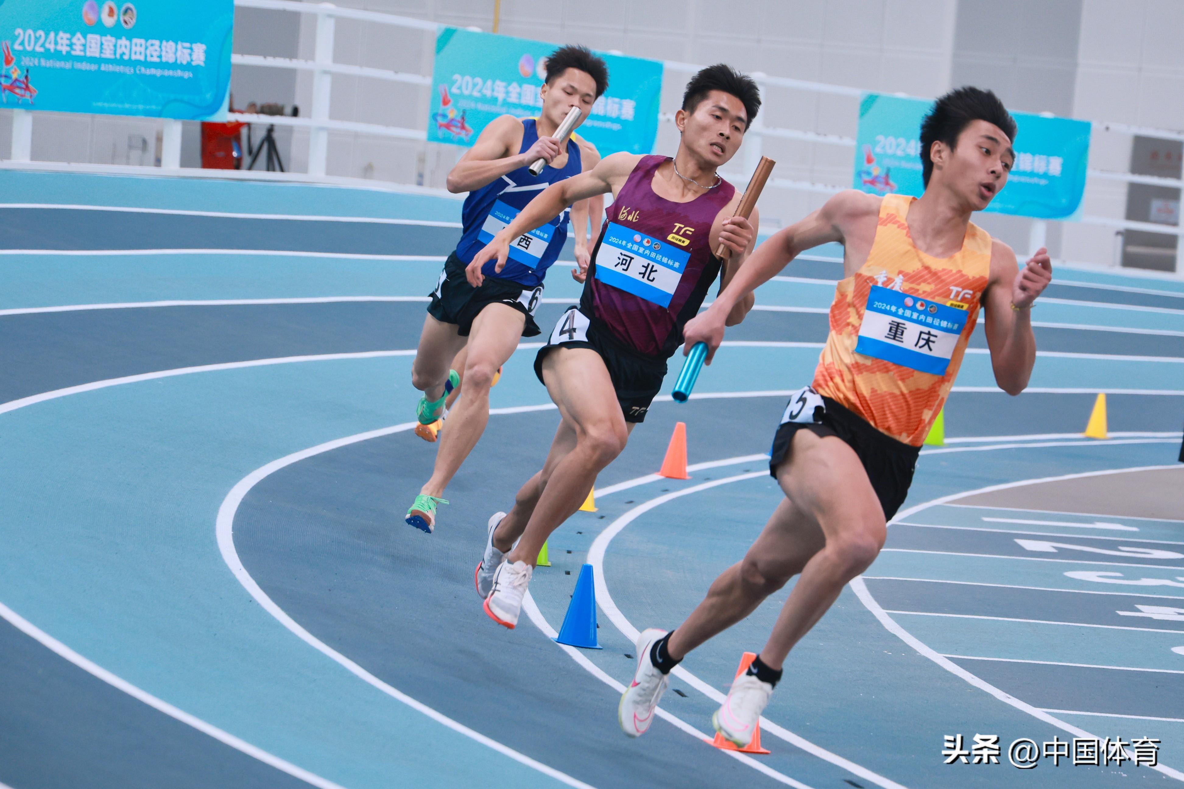 男子4x400米接力預賽中,由潘銀雲、李澤鋼、張涵博、蒙鑫鵬組成的河北隊以3分15秒65搶佔先機,四川隊和天津隊分列二、三位。(中國體育圖片 鹿麟 攝)