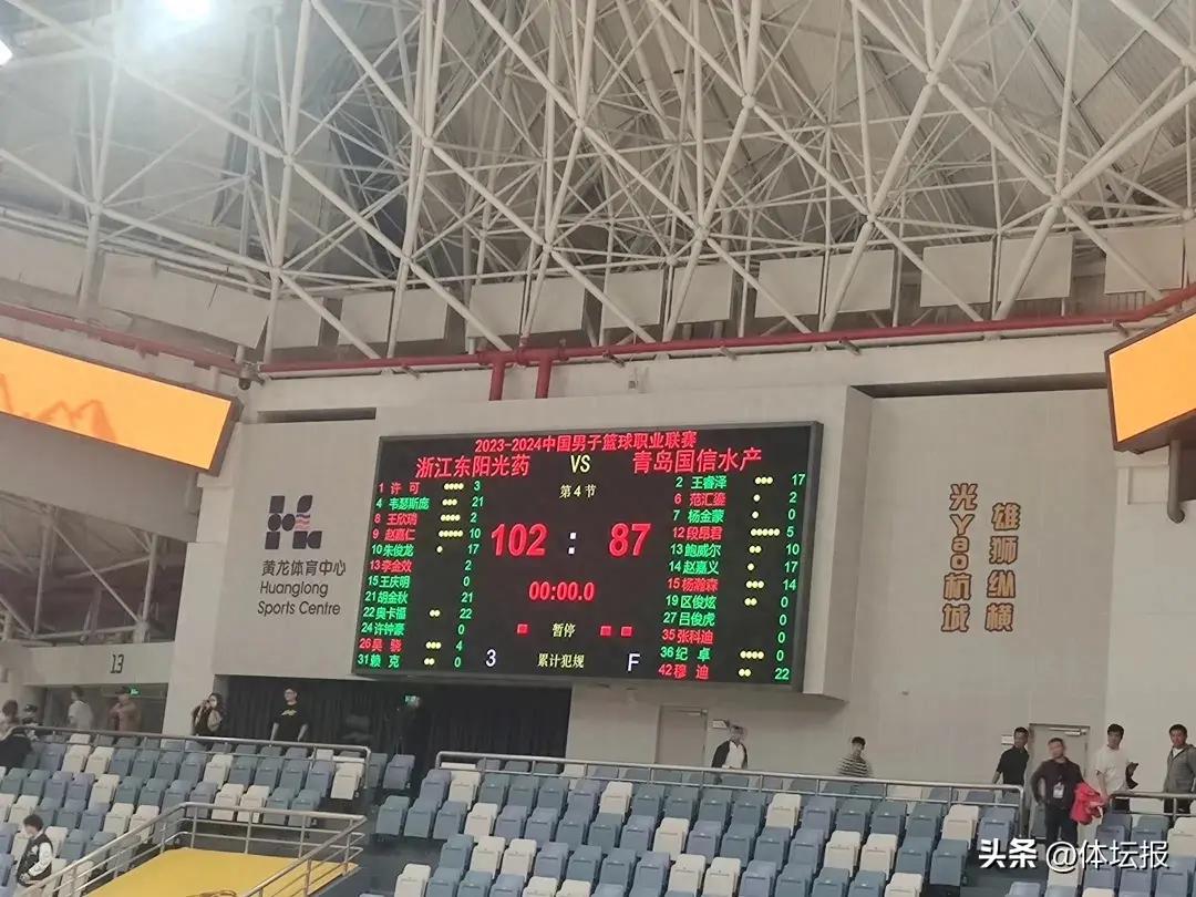 3月31日,浙江東陽光藥迎來本賽季常規賽主場收官戰,對手是已鎖定季後賽席位的青島國信水產。最終,東陽光藥102:87戰勝青島,以勝利收官常規賽主場。