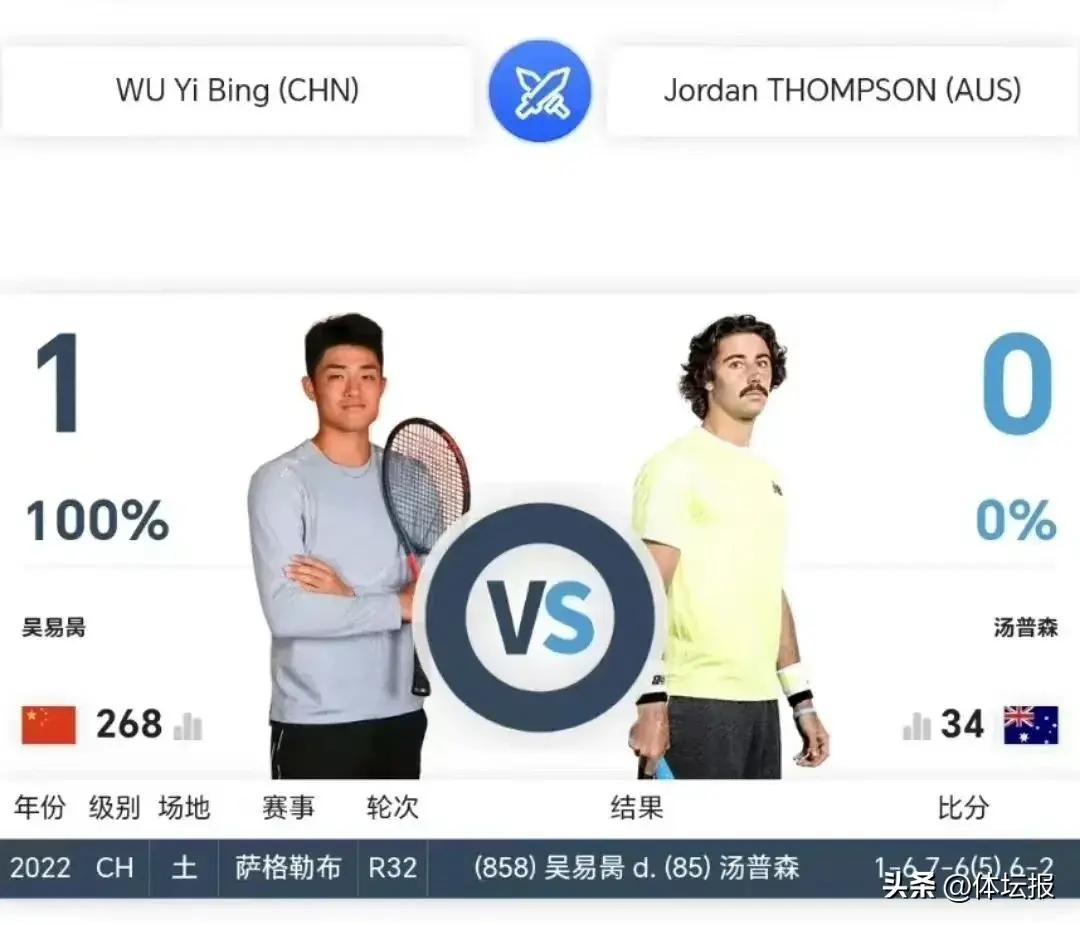 休整一天後,吳易昺將在正賽首輪對陣賽會6號種子、世界排名34位的湯普森。對手是今年洛斯卡沃斯賽冠軍,兩人曾在2022年薩格勒布紅土挑戰賽有過一次交手,當時吳易昺三盤獲勝。