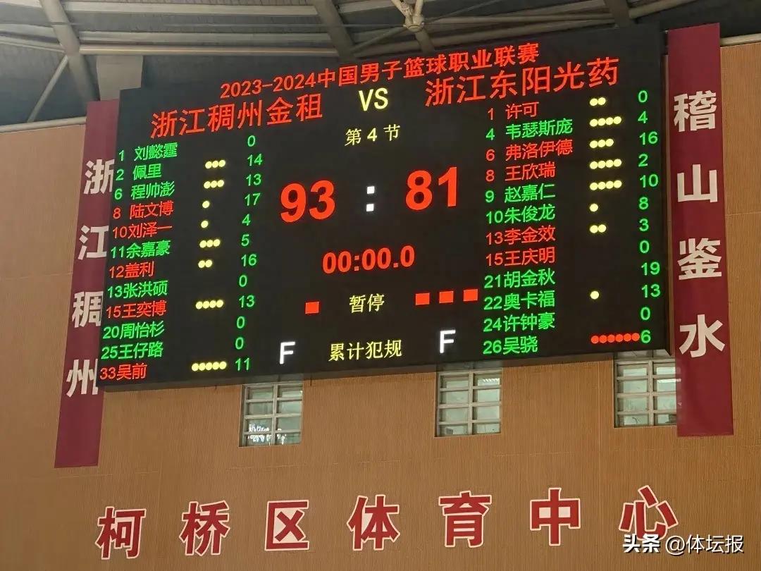 第四節,兩隊繼續展開對攻,還剩半節時兩隊戰平。關鍵時刻,浙江東陽光藥連續出現失誤,陸文博抓住機會跳投三分命中。浙江稠州金租男籃憑藉15個搶斷,在第四節建立領先優勢,最終以93:81贏得比賽。