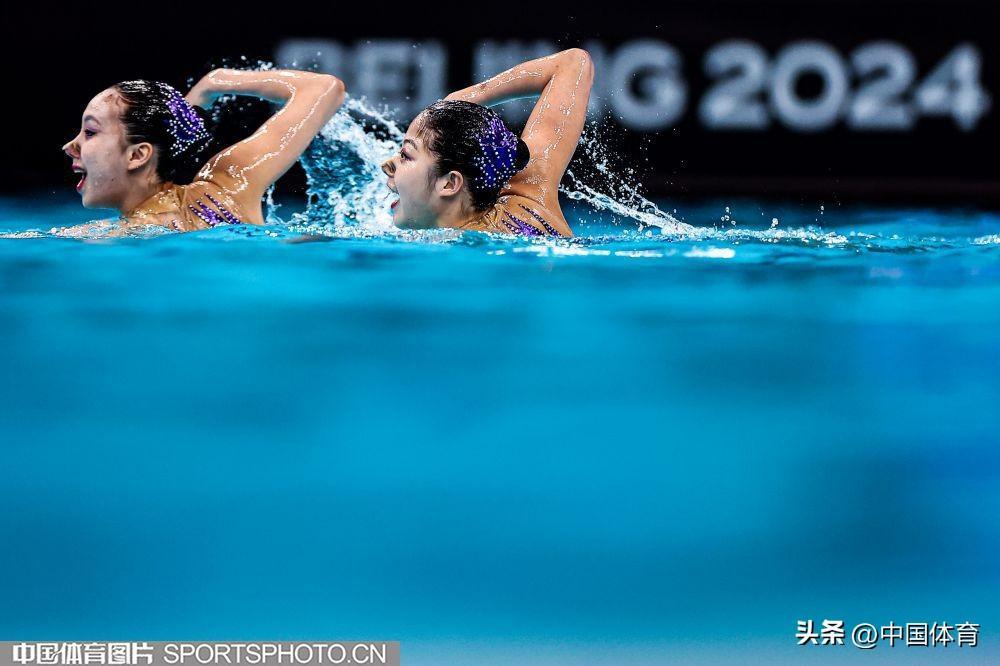 中國體育訊 4月7日,2024年花樣游泳世界盃(北京站)在北京國家游泳中心“水立方進入最後一個比賽日。在女子雙人自由自選比賽中,以色列組合以225.7613分的成績奪得冠軍,中國組合林彥含/徐匯妍以221.0156分的成績獲得亞軍,墨西哥組合以201.8510分的成績獲得季軍。(中國體育圖片 安靈均 攝)