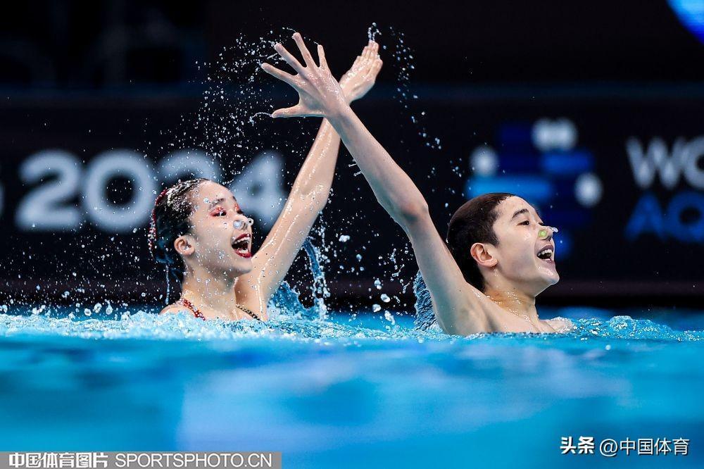 中國體育訊 4月7日,2024年花樣游泳世界盃(北京站)在北京國家游泳中心“水立方進入最後一個比賽日。在混合雙人自由自選比賽中,中國選手郭牧兮/顧嘉虞以148.1042分的成績位列第四名。意大利隊、哈薩克斯坦隊和西班牙隊分獲前三名。(中國體育圖片 安靈均 攝)