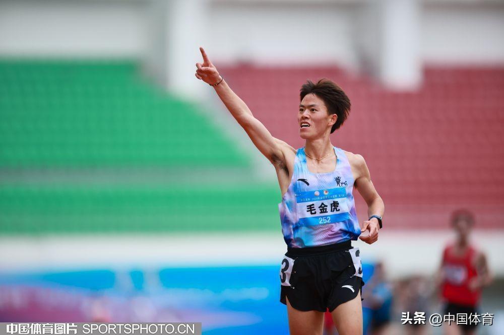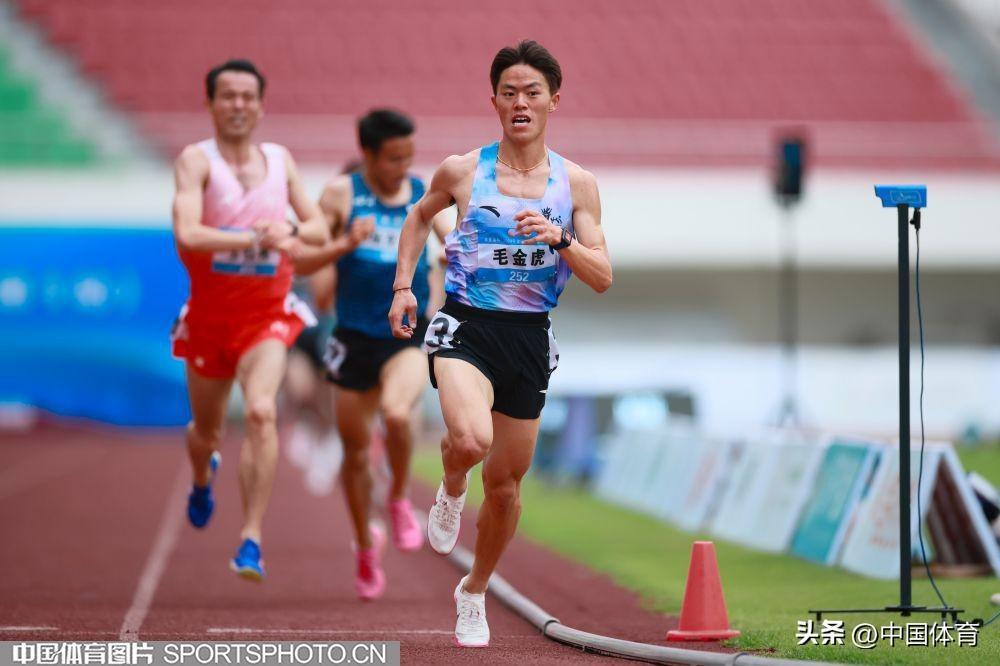 男子5000米決賽中,貴州隊毛金虎以13分57秒66折桂,河南隊王紅偉和甘肅隊桑吉東知分獲亞軍和季軍,成績分別爲14分02秒43和14分02秒69。(中國體育圖片 鹿麟 攝)