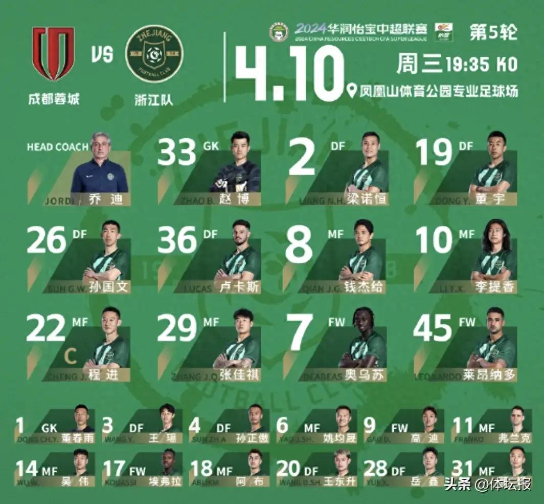 4月10日,中超第五輪比賽激戰正酣。本輪比賽,浙江隊遠赴四川鳳凰山,客場挑戰成都蓉城。最終,浙江隊以0:3負於對手。