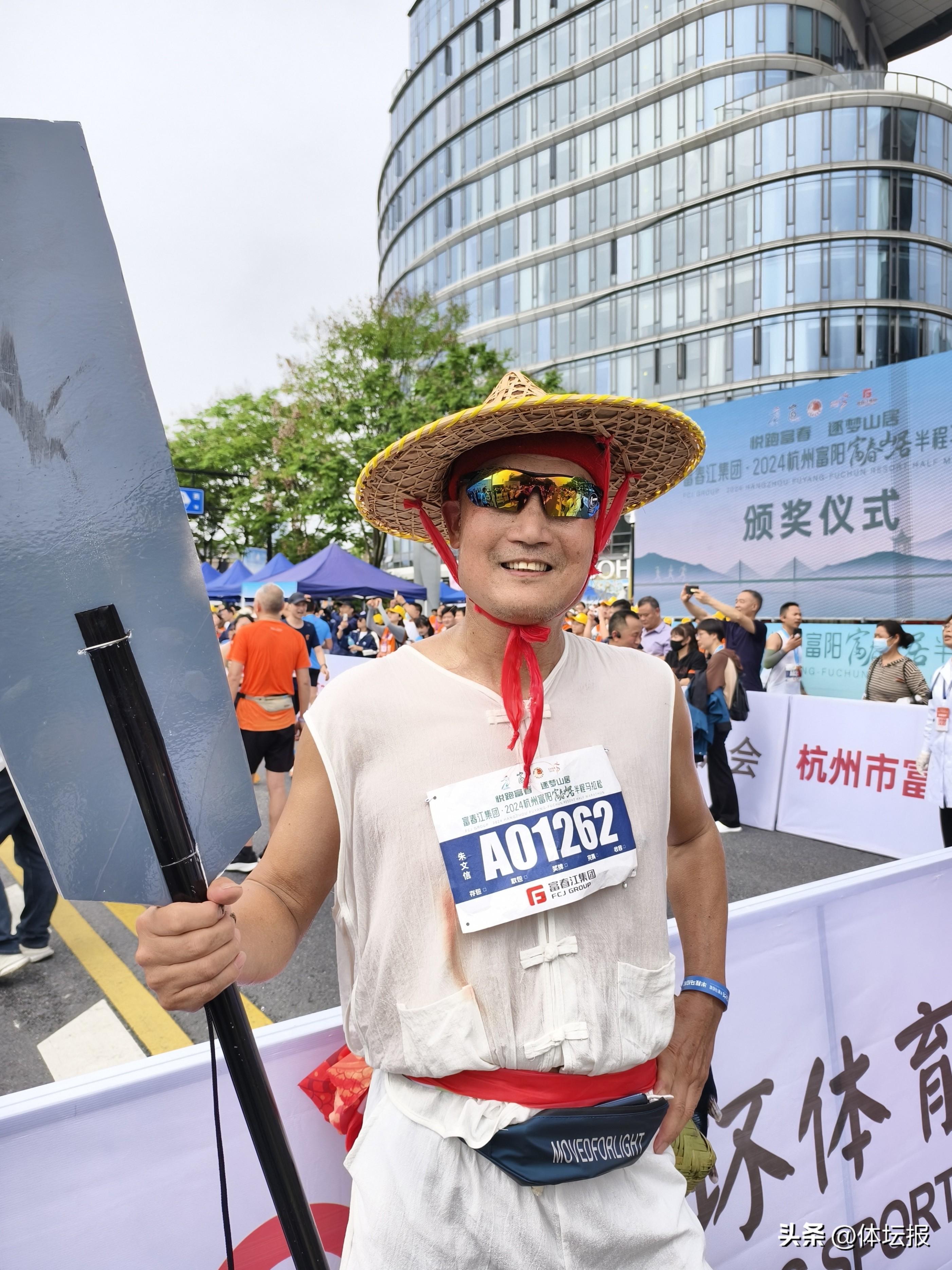 跑友朱文信身着漁夫裝扮,手持船槳,身背魚簍,在奔跑的隊伍中格外亮眼。“跑馬是全民參與的運動,選擇這樣打扮也是爲了給家門口的首屆馬拉松增添一些樂趣。”朱文信說,成績不重要,重要的是快樂奔跑。